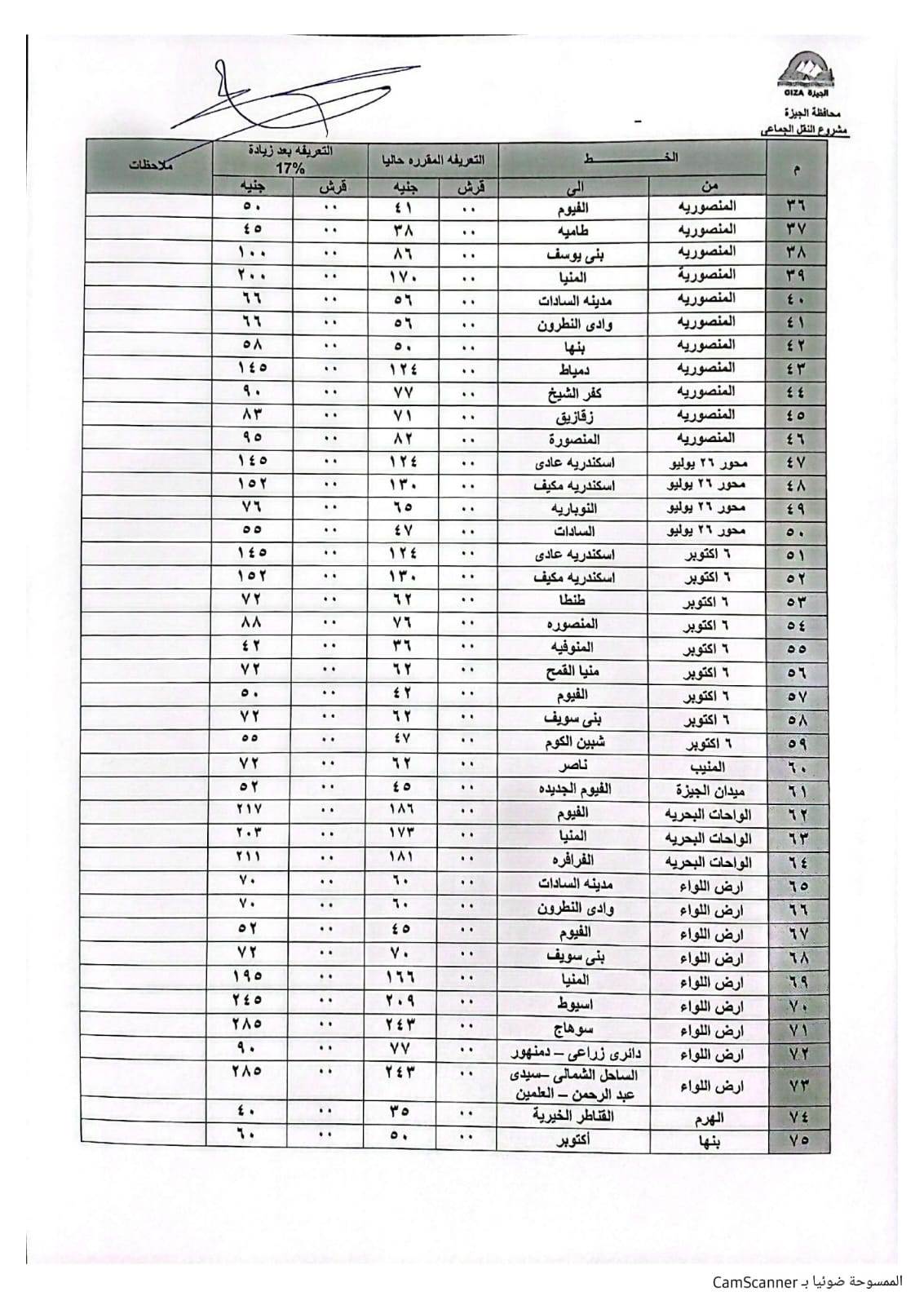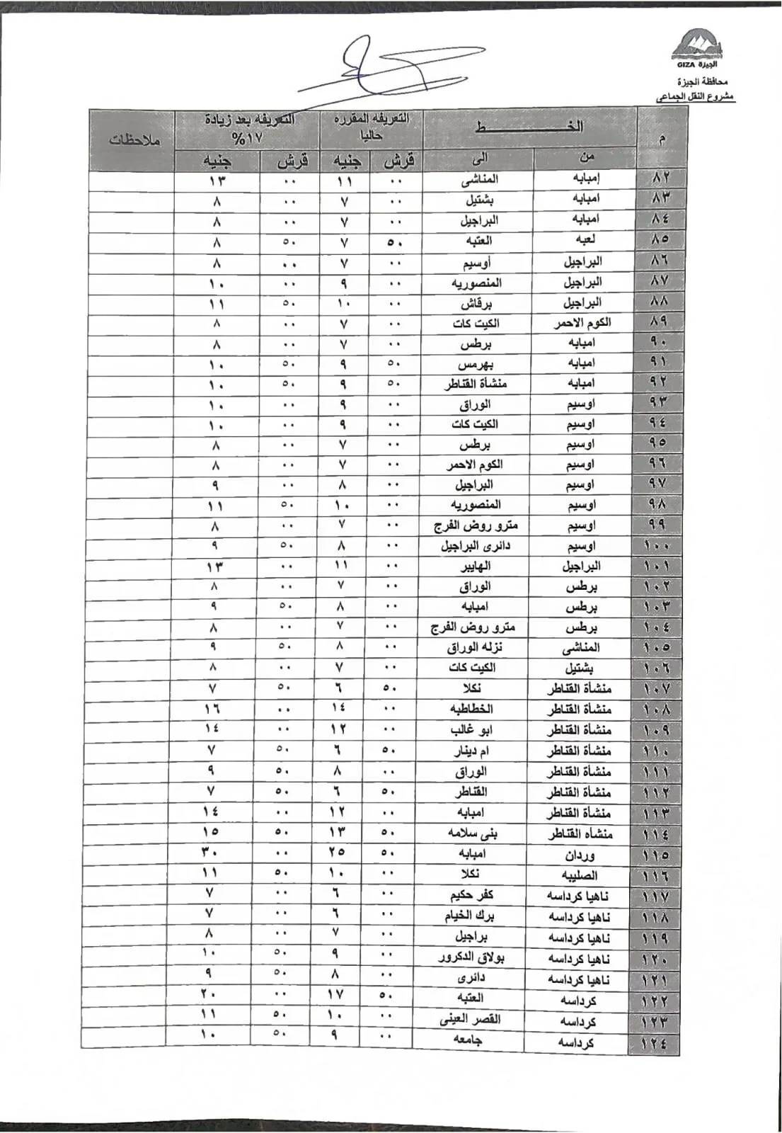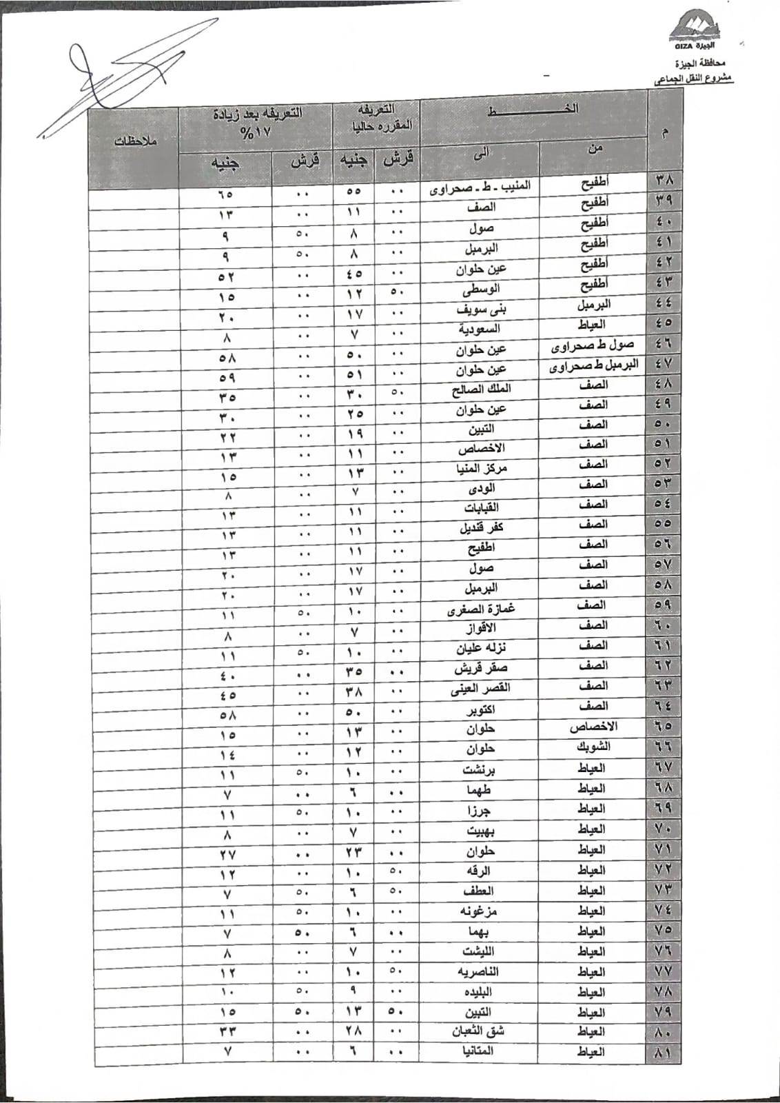 تعريفة ركوب سيارات السرفيس والنقل الجماعى بمحافظة الجيزة