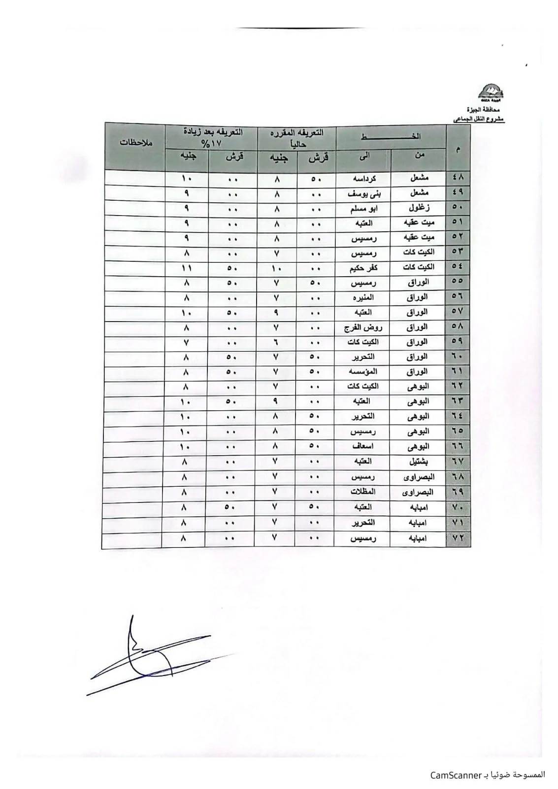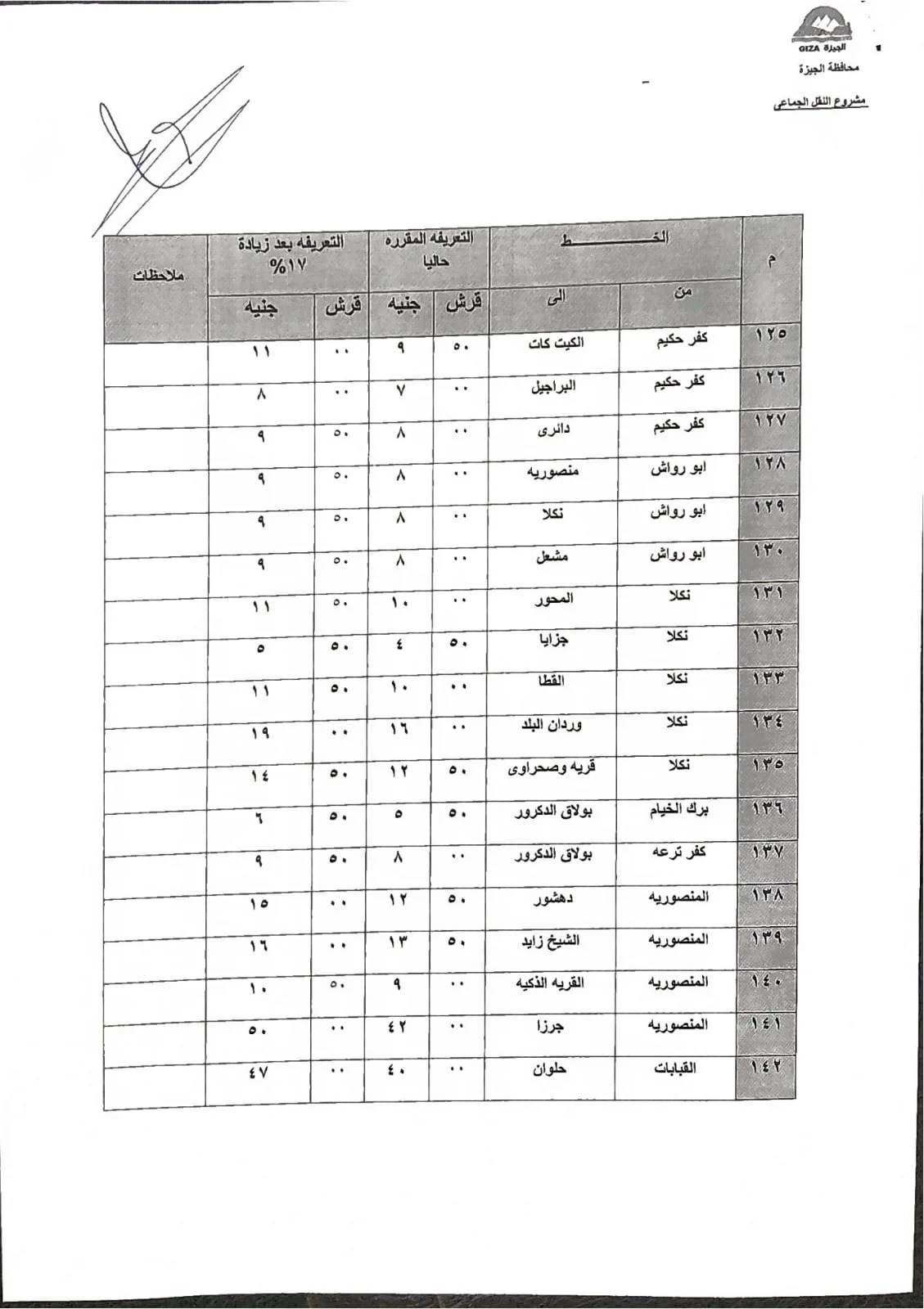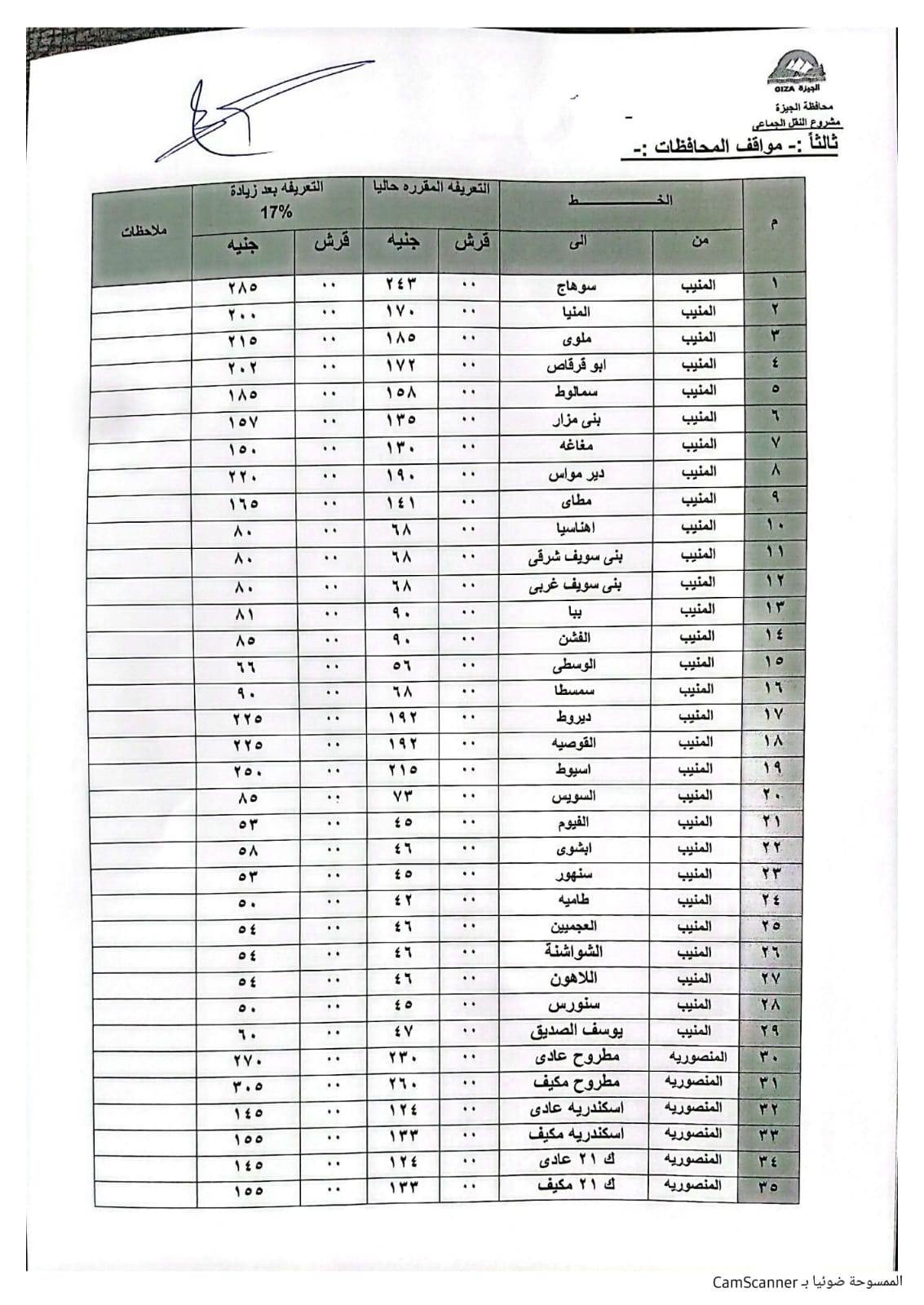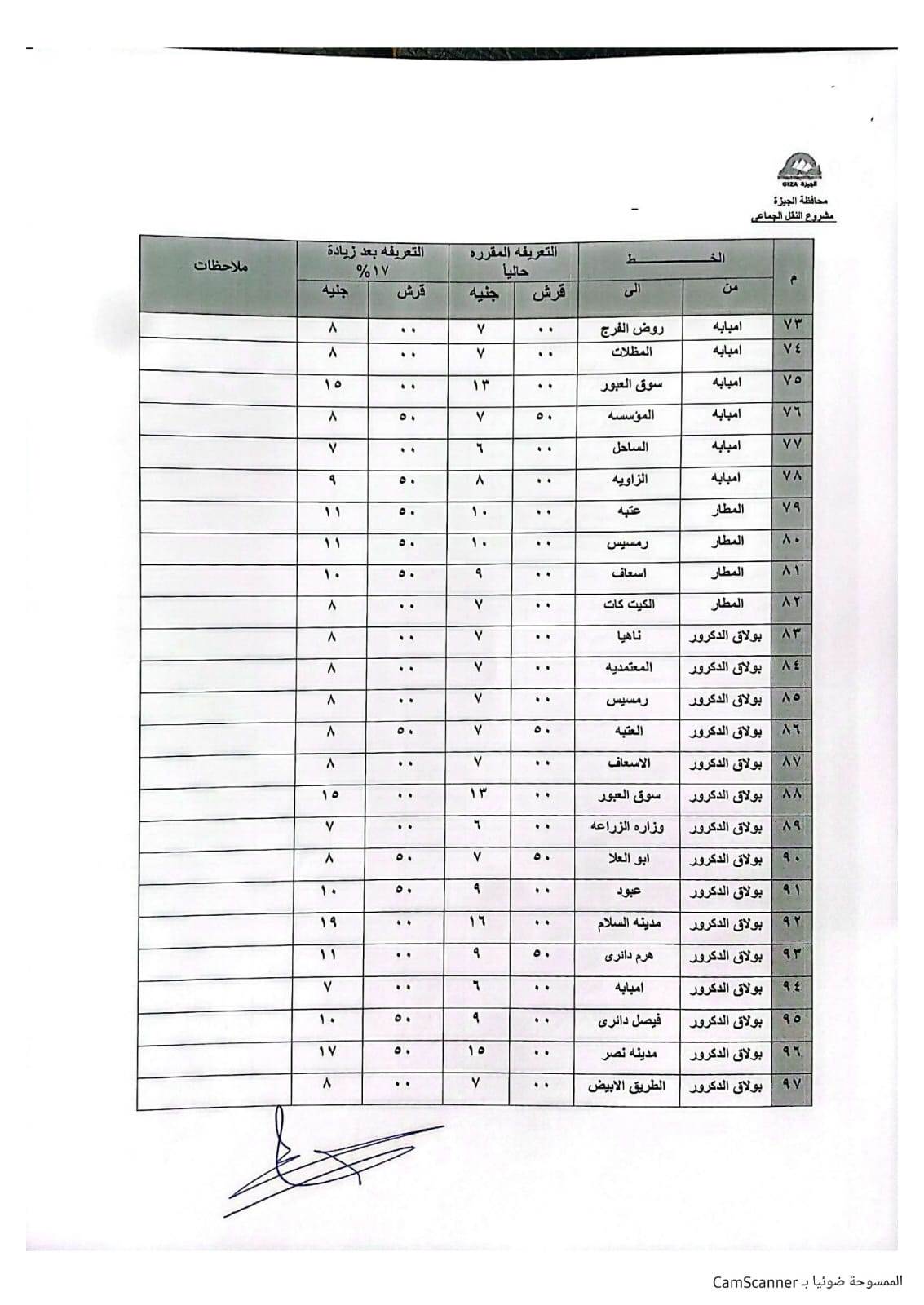 تعريفة ركوب سيارات السرفيس والنقل الجماعى بمحافظة الجيزة