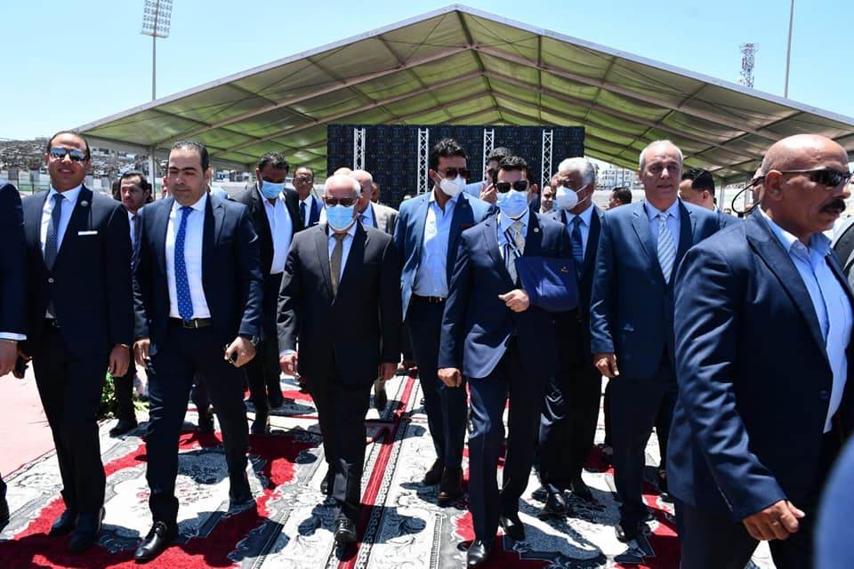 وزير الرياضة ومحافظ بورسعيد يضعان حجر أساس استاد النادي المصري