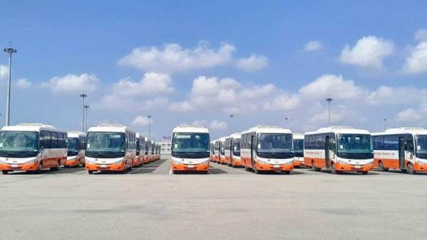 رصيف محطة تداول السيارات بميناء شرق بورسعيد يشحن 100 حافلة مُصنّعة محليًا على متن السفينة SUNSHINE ACE