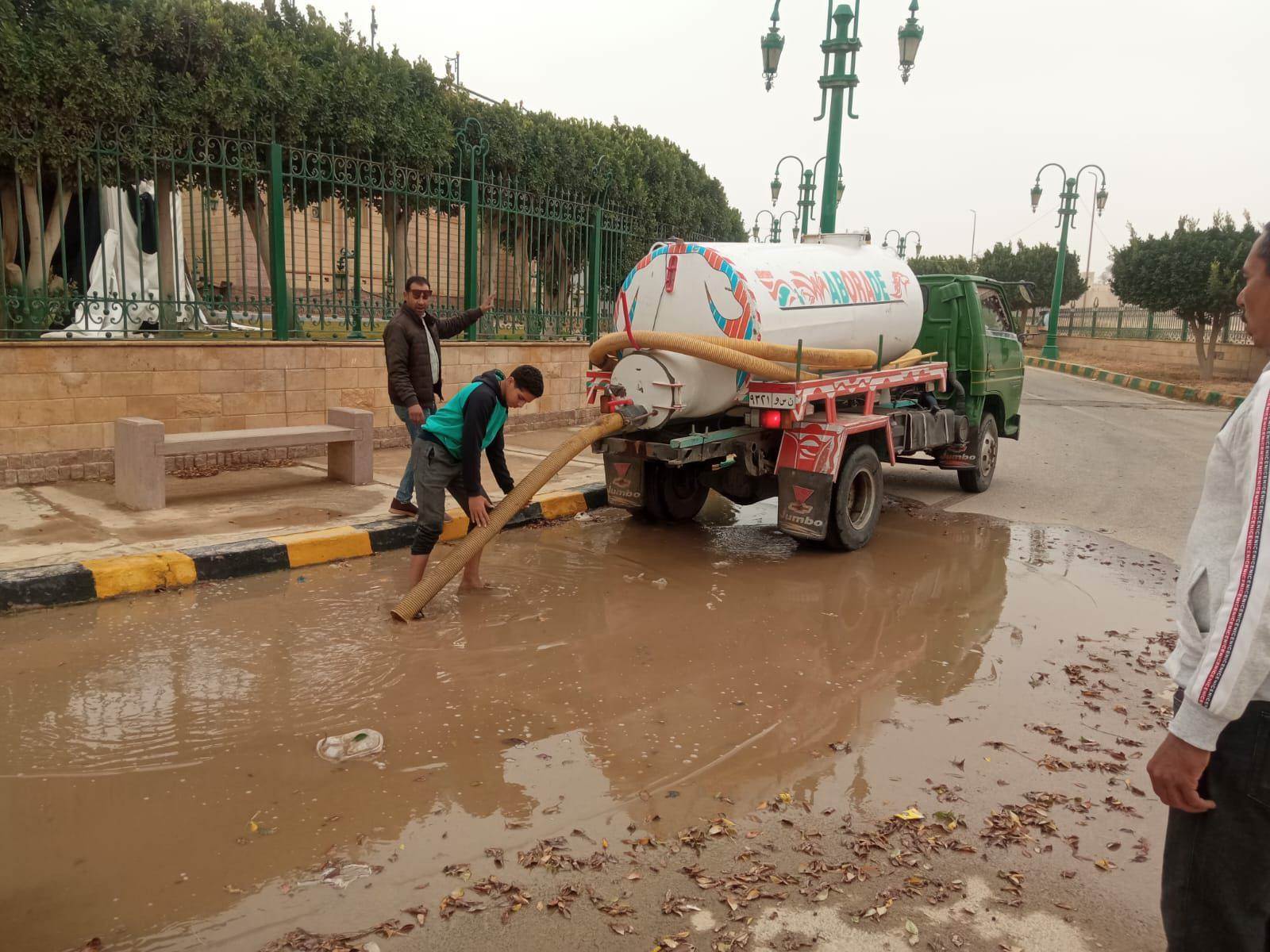 وفي مدينة المنيا الجديدة، تم التحرك الفوري للتعامل مع تجمعات مياه الأمطار بمختلف شوارع وميادين المدينة، مع العمل على سحب المياه أولًا بأول، لضمان تحقيق السيولة المرورية وتيسير حركة المواطنين، خاصة في المناطق الحيوية والطرق الرئيسية، إلى جانب الاستجابة العاجلة لشكاوى وبلاغات السكان، ولا سيما بالمناطق المنخفضة.