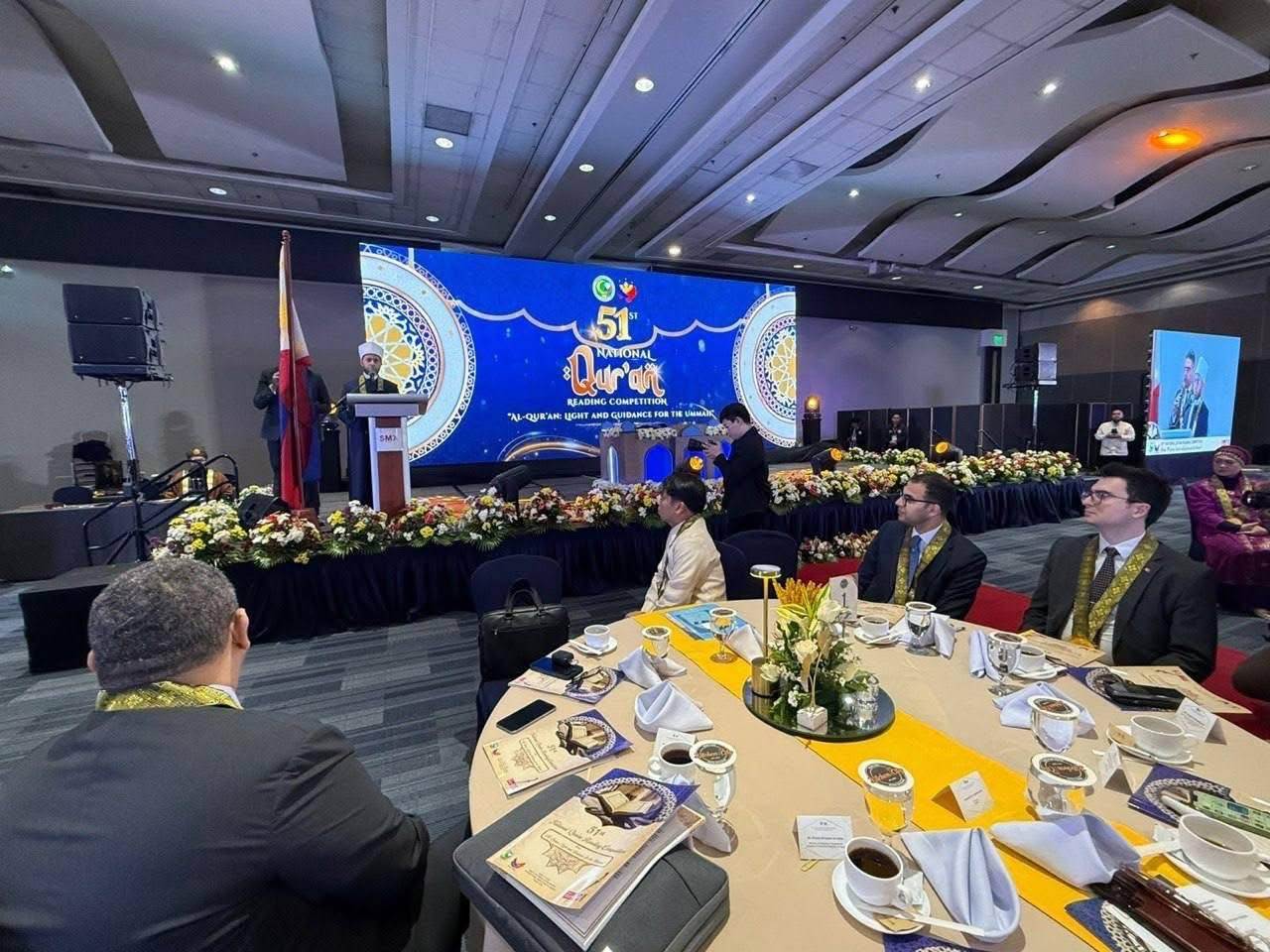 شهد الدكتور أسامة الأزهري - وزير الأوقاف، يرافقه سعادة السفير نادر زكي - سفير مصر لدى الفلبين، فعاليات افتتاح المسابقة الوطنية الحادية والخمسين لحفظ وتلاوة القرآن الكريم بالعاصمة الفلبينية مانيلا، التي تقام هذا العام تحت شعار: «القرآن: نور وهداية للأمة»، وذلك بحضور الوزير الدكتور صابودين عبد الرحيم – رئيس اللجنة الوطنية لمسلمي الفلبين، وعدد من القيادات التنفيذية والدينية الوطنية، والممثلين الدبلوماسيين، تقديرًا لأهمية المسابقة التي يشارك في تصفياتها النهائية ٣٥ متسابقًا، بواقع ١٧ من الإناث و١٨ من الذكور من مختلف أنحاء الفلبين، علمًا بأن الفائز بالمركز الأول يشارك في المسابقة الدولية لتلاوة وحفظ القرآن الكريم في ماليزيا التي تقام في أكتوبر المقبل.