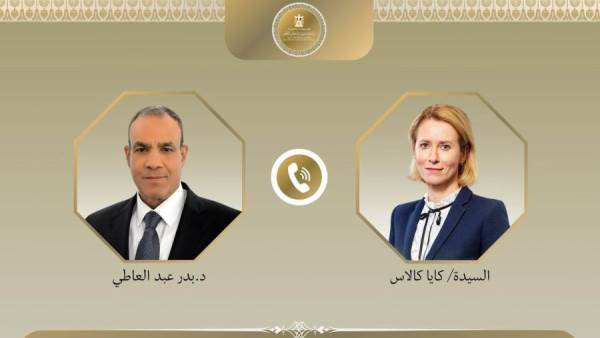جرى اتصال هاتفي بين د. بدر عبد العاطي وزير الخارجية والتعاون الدولى والمصريين بالخارج و"كايا كالاس" الممثلة العليا للشئون الخارجية والسياسة الأمنية للاتحاد الأوروبي، يوم الاثنين ١٣ إبريل، في إطار التشاور المستمر لمناقشة سبل خفض التصعيد العسكرى فى المنطقة.