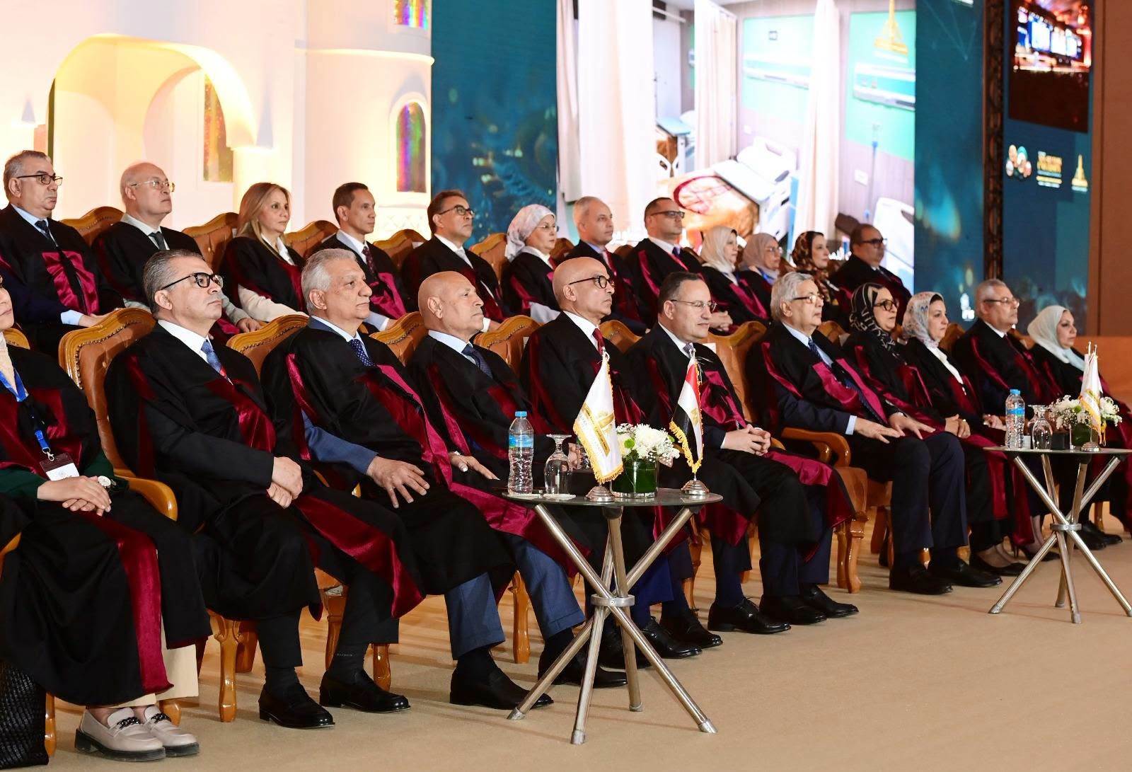وشهدت الجلسة الافتتاحية حضورًا رسميًا رفيع المستوى، ضم عددًا من كبار رجال الدولة، من بينهم مستشارو رئيس الجمهورية، ووزراء حاليون وسابقون، وقيادات السلطة التشريعية والتنفيذية، إلى جانب رؤساء الجامعات المصرية وقيادات وزارة التعليم العالي، بما يعكس أهمية المؤتمر كمنصة وطنية جامعة لرسم ملامح مستقبل التعليم والتنمية في مصر. وقد شهدت فعاليات الافتتاح مراسم منح الدكتوراه الفخرية لأحد أبناء الجامعة المتميزين المستشار عمر مروان، تقديرًا لإسهاماته في دعم مؤسسات الدولة وتعزيز العمل المؤسسي.