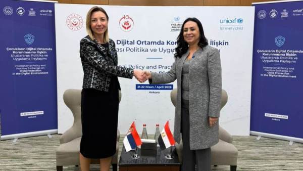 التقت الدكتورة مايا مرسي وزيرة التضامن الاجتماعي، تانجانا ماكورا وزيرة المساواة بين الجنسين والوقاية من العنف ضد النساء والتمكين الاقتصادي والسياسي للنساء بجمهورية صربيا، وذلك على هامش مشاركتها في اجتماع المائدة المستديرة حول "تبادل السياسات والممارسات الدولية بشأن حماية الطفل في البيئة الرقمية" بأنقرة، بحضور دينا الصيرفي مساعدة وزيرة التضامن الاجتماعي للتعاون الدولي والعلاقات والاتفاقات الدولية.