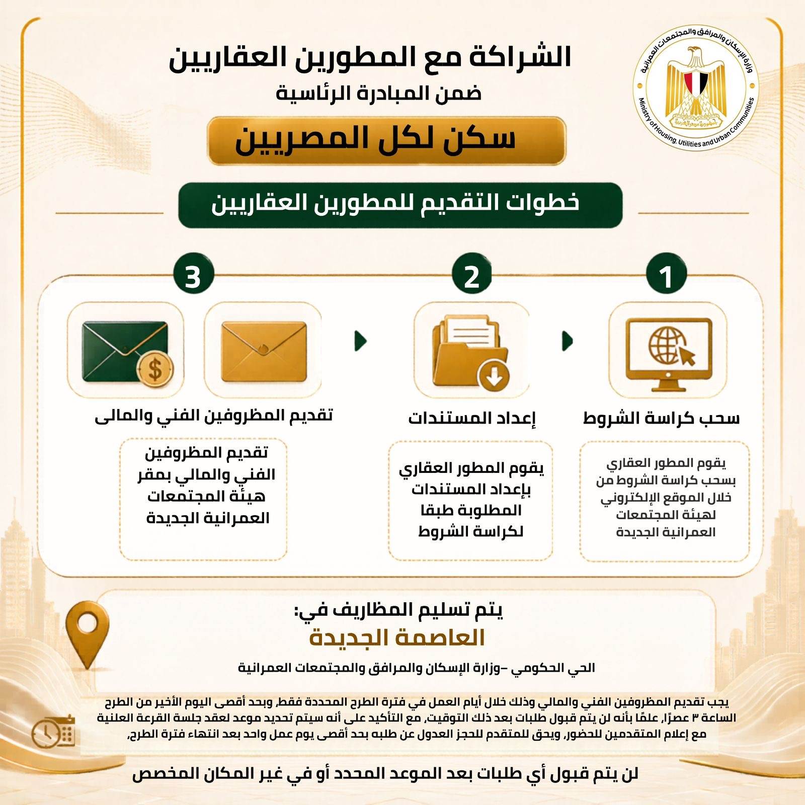 ويأتي هذا الطرح في إطار توجه الدولة نحو تعزيز التعاون مع القطاع الخاص، بهدف تسريع وتيرة التنمية العمرانية، وزيادة المعروض من الوحدات السكنية بمختلف مستوياتها، بما يلبي احتياجات شرائح متنوعة من المواطنين، خاصة في ظل الطلب المتزايد على الإسكان خلال السنوات الأخيرة. ويعكس المشروع رؤية الدولة في تحقيق التوازن بين العرض والطلب في السوق العقارية، مع الحفاظ على جودة البناء وتنوع الأنماط السكنية.