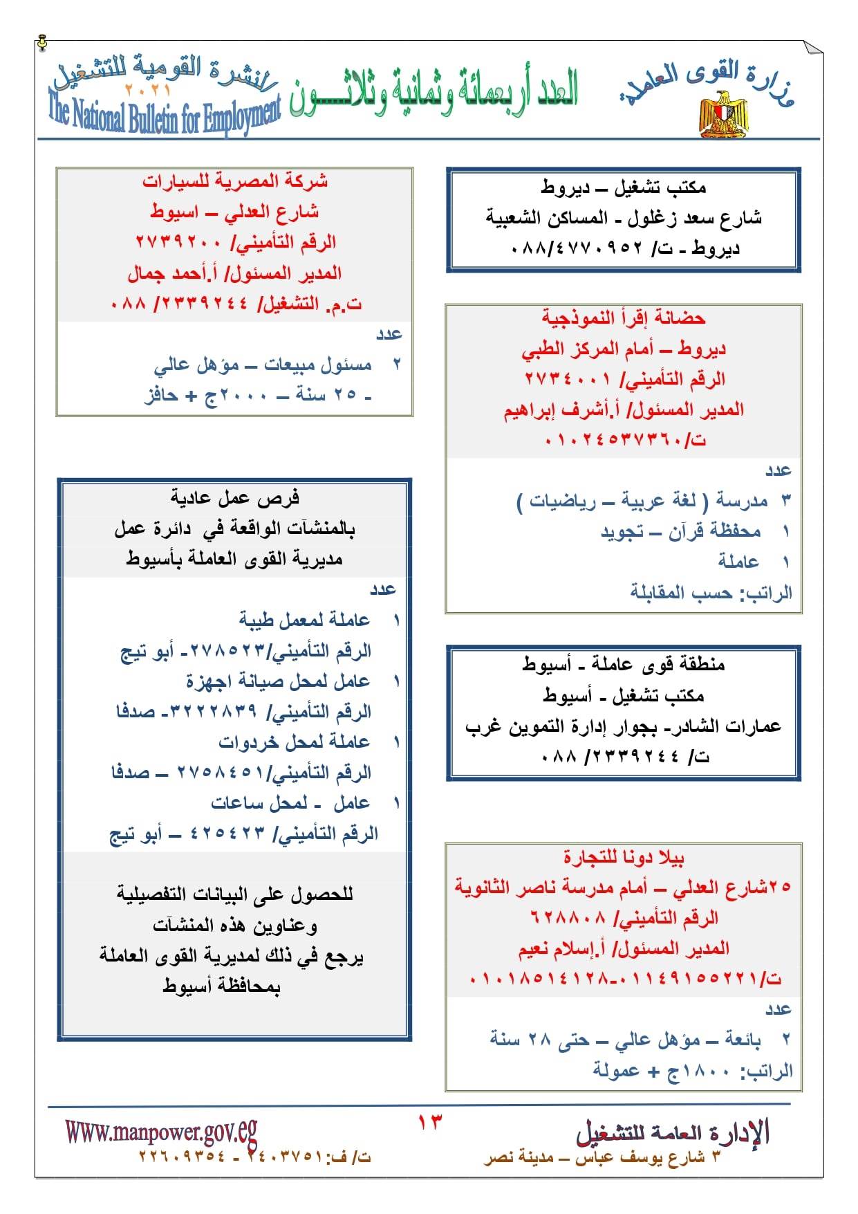 كما تم توفير فرص عمل بأسيوط شملت: 5 مدرسات لغة عربية ورياضيات ، و 10 أخصائي إئتمان ، و 32 أخصائي تمويل ، و محفظة قرآن ، و 2 مسئول مبيعات ، و عاملة عادية ، وبائعة ، و عاملة لمعمل تحاليل طبية ، وعامل لمحل صيانة أجهزة ، وعامل لمحل خردوات ، وعامل لمحل ساعات.