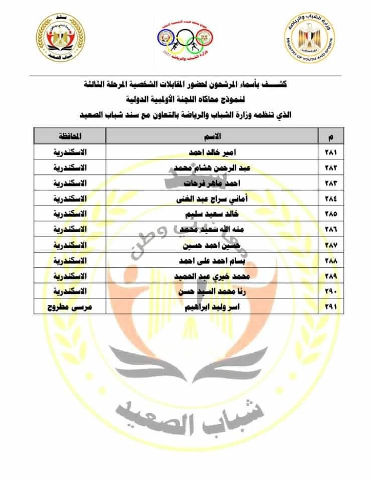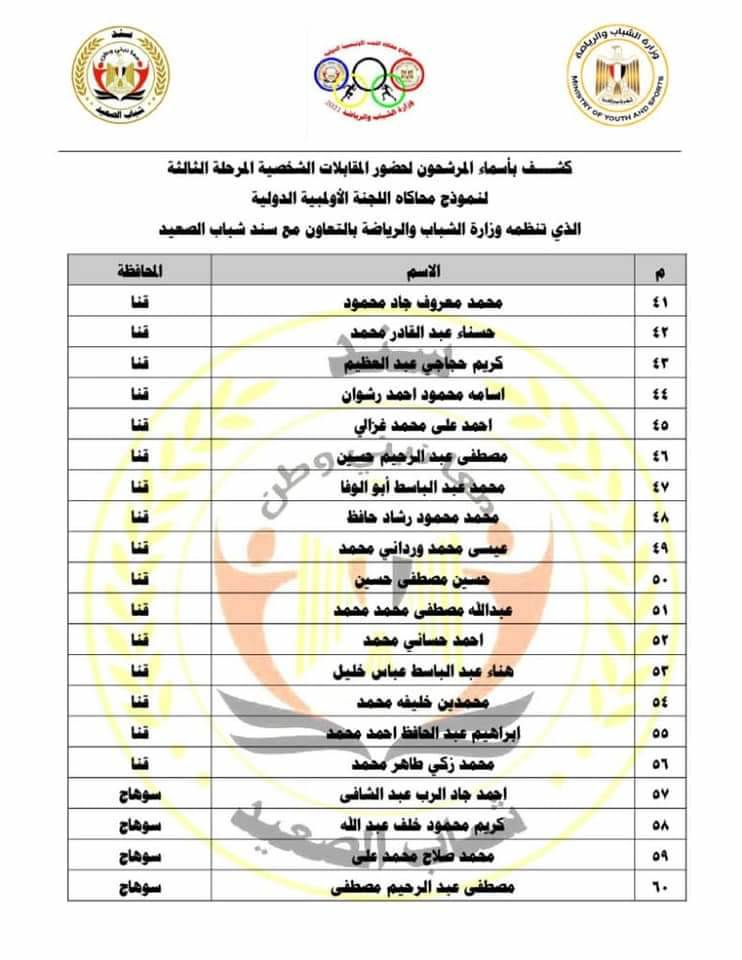 اعلان أسماء المقبولين لحضور المقابلات الشخصية للمرحلة الثالثة من اللجنة الأوليمبية الدوليه