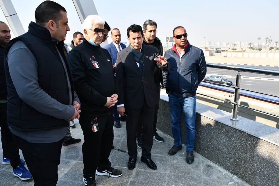 رافق وزير الشباب والرياضة خلال جولته الدكتور صبحي حسانين نائب رئيس الاتحاد المصري الرياضي للجامعات، الدكتور عمرو حداد مساعد وزير الشباب والرياضة للتنمية الرياضية، ومحمود عبد العزيز مدير عام الادارة العامة للاتحادات النوعية