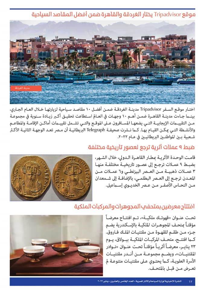 بالصور.. النشرة الإخبارية لوزارة السياحة والآثار الخاصة بشهر يناير 2022
