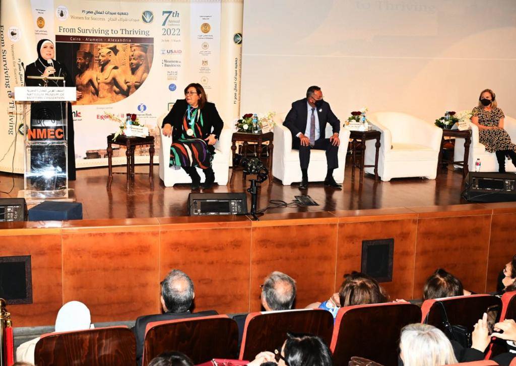 جاء ذلك في سياق كلمة الوزيرة التي ألقتها بالإنابة عن الدكتور مصطفى مدبولي، رئيس مجلس الوزراء خلال افتتاحها فعاليات المؤتمر السنوي الدولي السابع "سيدات...شركاء النجاح: من التعايش إلى التميز" الذي نظمته جمعية سيدات أعمال مصر بالمتحف القومي للحضارة المصرية، وقد شارك في فعاليات الافتتاح الدكتورة شريفة شريف المدير التنفيذى للمعهد القومي للحوكمة والتنمية المستدامة بوزارة التخطيط والدكتور أحمد غنيم الرئيس التنفيذي لهيئة المتحف القومي للحضارة المصرية والسيدة ليزلي ريد مديرة الوكالة الامريكية للتنمية الدولية في مصر والدكتورة يمنى الشريدي رئيس جمعية سيدات أعمال مصر.