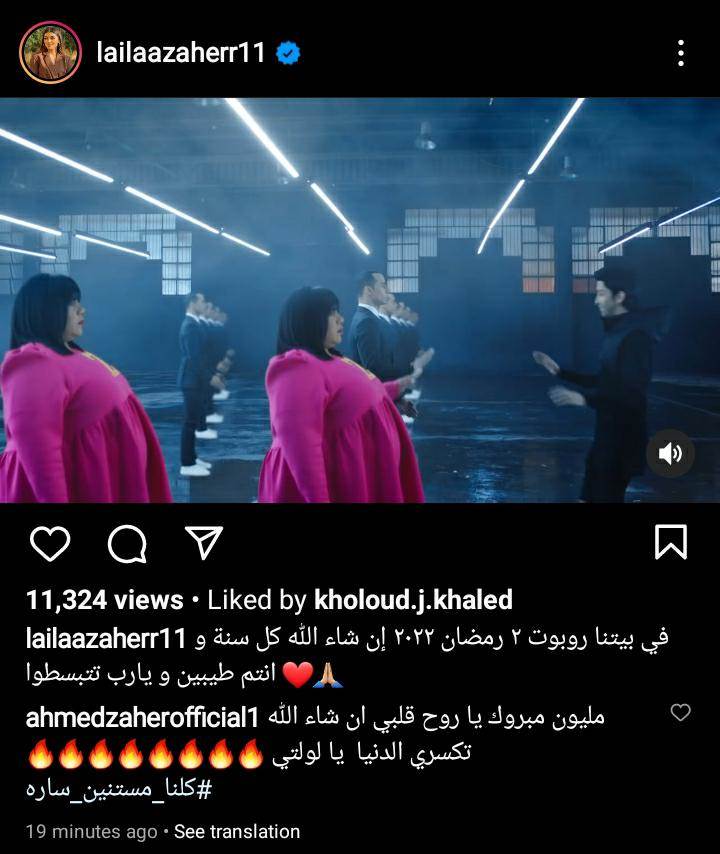 وعلق عليه الفنان أحمد زاهر لأبنته "ليلي زاهر"، وقال: "مليون مبروك ياروح قلبي إن شاءالله تكسري الدنيا يالولتي كلنا مستنين ساره".