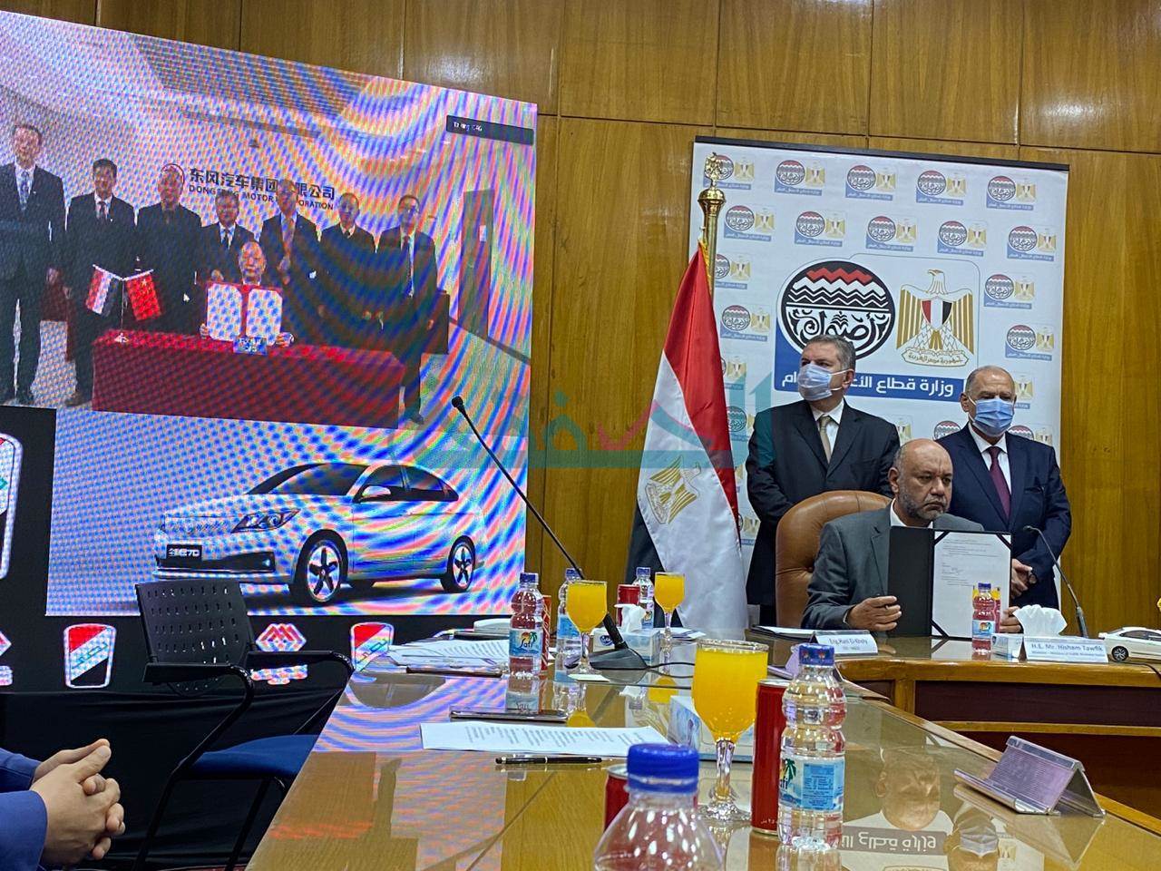 شهد هشام توفيق وزير قطاع الأعمال العام توقيع عقد شراكة بين شركتى دونج فينج الصينية و النصر لصناعة السيارات لبدء تصنيع السيارات الكهربائية بحضور السفير الصيني بالقاهرة.