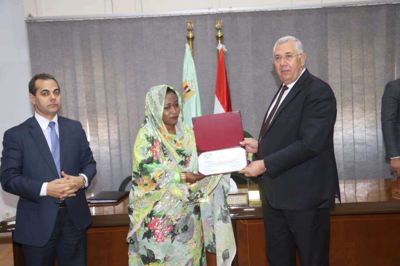 سلم السيد القصير وزير الزراعة واستصلاح الأراضي، المبعوثين من قارتي إفريقيا وأسيا، والبالغ عددهم ٢٣ متدرب يمثلون ١٢ دولة، والذين اتموا البرامج التدريبية بالمركز المصري الدولي للزراعة التابع للعلاقات الزراعية الخارجية في مجالي انتاج وصحة الدواجن، وتنمية المزارع السمكية.