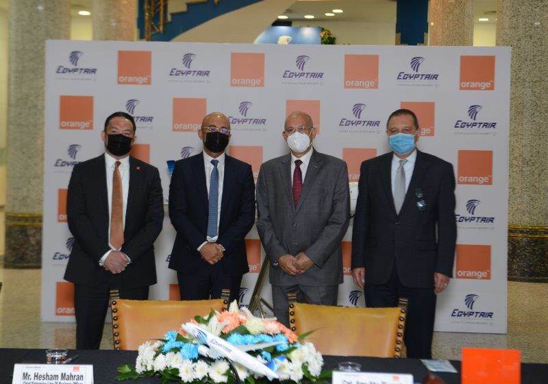 وبحضور الطيار رشدي زكريا رئيس الشركة القابضة لمصر للطيران والمهندس ياسر شاكر، الرئيس التنفيذي والعضو المنتدب لشركة اورنچ مصر ، قام بتوقيع العقد هشام مهران نائب رئيس اورنچ مصر لقطاع الاعمال والطيار عمرو أبو العينين رئيس مجلس إدارة شركة مصر للطيران للخطوط الجوية.