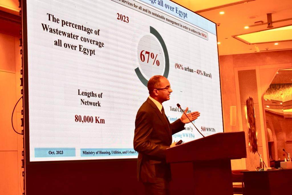 وأشار الدكتور سيد إسماعيل، إلى مجهودات وزارة الإسكان في زيادة وتحسين مستوى خدمات مياه الشرب والصرف الصحي على مستوى أنحاء الجمهورية، وخُطط الوزارة في ترشيد استهلاك المياه وتعظيم الاستفادة من الموارد المائية المتاحة، والتي تستهدف الاستفادة من جميع الموارد المائية المتاحة ومنها نهر النيل الذي يعد المصدر الرئيسي لمياه الشرب في مصر بجانب مياه البحار والآبار، وكذا زيادة الاهتمام بإعادة الاستخدام الآمن لمياه الصرف الصحي والزراعي المعالجة، وتقليل الفواقد بأنواعها المختلفة واستخدام القطع الخاصة الموفرة، والعدادات الكودية الذكية، وزيادة التوعية المجتمعية بأهمية المياه والحفاظ عليها.