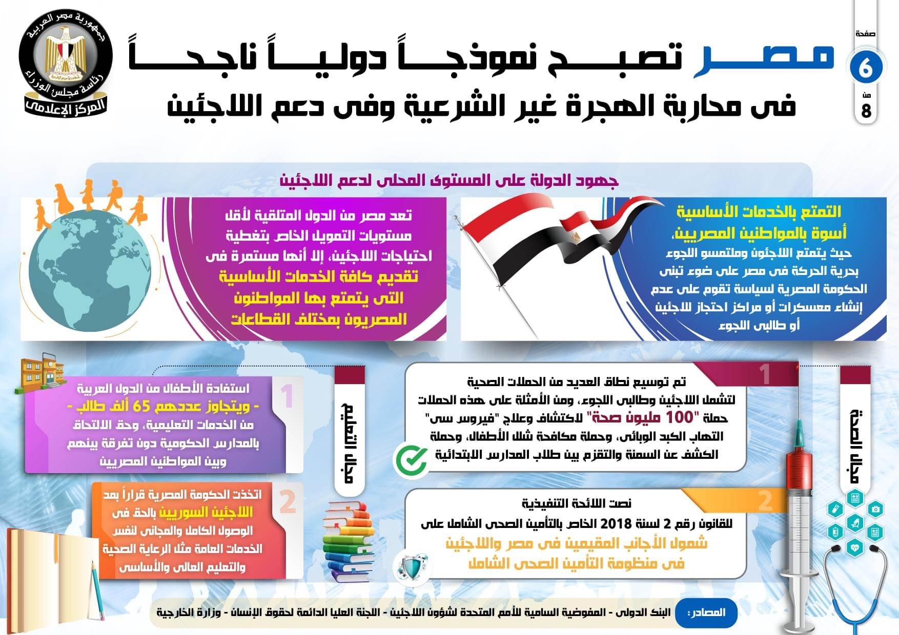 بالإنفوجراف:مصر تصبح نموذجاً دولياً ناجحاً في محاربة الهجرة غير الشرعية وفي دعم اللاجئين