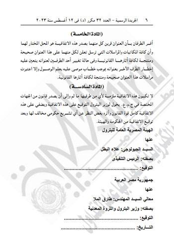 كما نشرت الجريدة الرسمية تصديق الرئيس عبد الفتاح السيسى على القانون رقم 169 لسنة 2023 ، بالترخيص لوزير البترول والثروة المعدنية فى التعاقد مع الهيئة المصرية العامة للبترول للبحث عن البترول وتنميته واستغلاله فى منطقة تنمية رأس العش بخليج السويس.